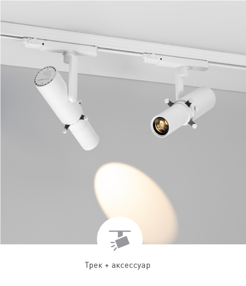 Насадки с изменяемым углом 10–50° и фиксированными углами 10, 15, 30 и 40° позволяют подобрать подходящие под объект акценты; овалорисующая и кадрирующая насадки придают световому пятну различные формы; антислепящие насадки корректируют светораспределение и повышают зрительный комфорт.