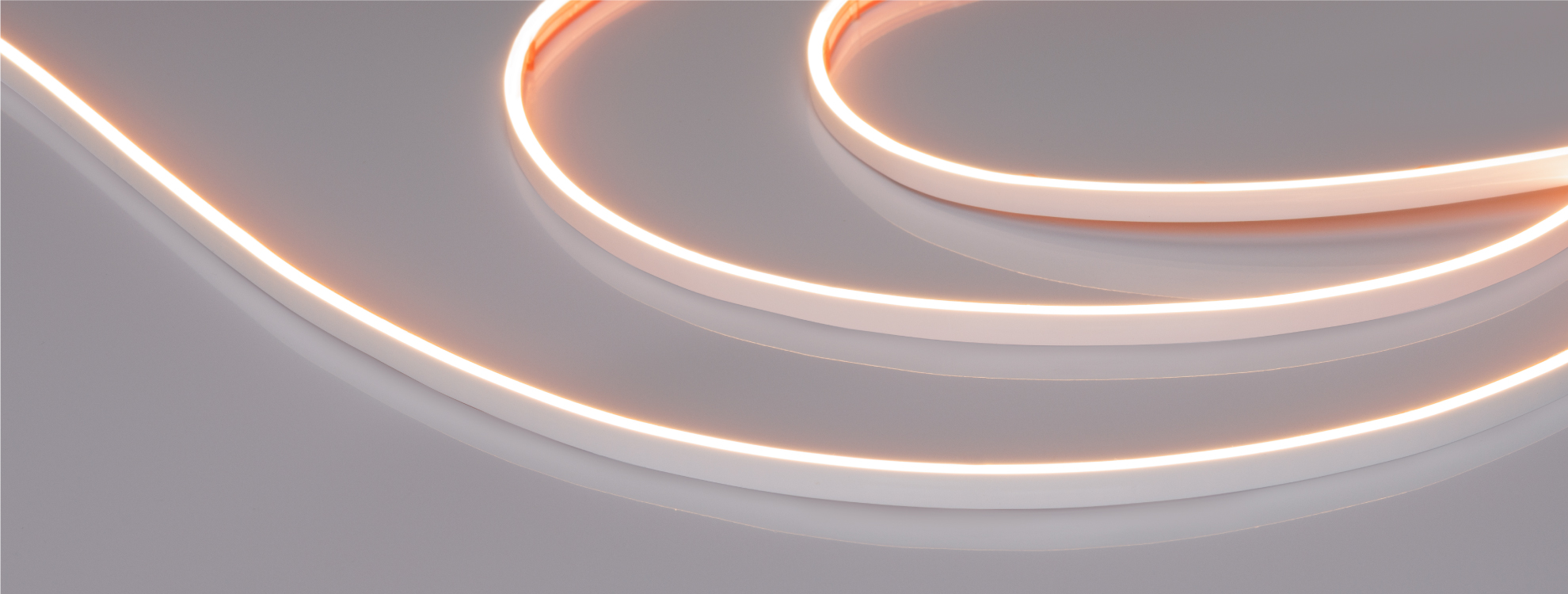 Малые габариты Размер ленты — 2.5×6 мм. Установка в специализированный тонкий профиль или скотч позволяет реализовать подсветку очень тонкими линиями света.