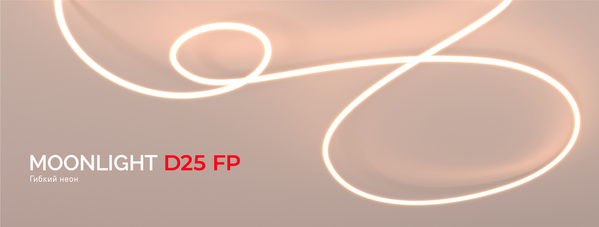 Гибкий неон MOONLIGHT с диаметром 25 мм имеет стальную пластину внутри, благодаря которой сохраняет форму изгиба без дополнительных креплений. Равномерное свечение неона направлено на 360°. С помощью MOONLIGHT D25 FP возможно создать локальное и основное освещение, а также оригинальные арт-объекты. 3D-инсталляции на основе круглого гибкого неона гармонично впишутся в гостиные, кухни, детские комнаты и коммерческие пространства.