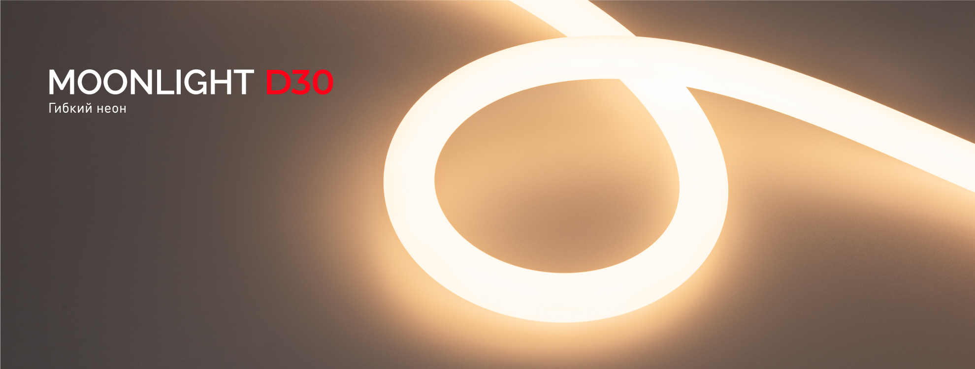 Гибкий неон MOONLIGHT диаметром 30 мм обладает равномерным свечением, направленным на 360°. Неон предназначен для создания локального или основного освещения, а также оригинальных арт-объектов. 3D-инсталляции на основе круглого гибкого неона гармонично впишутся в гостиные, кухни, детские комнаты и коммерческие пространства.