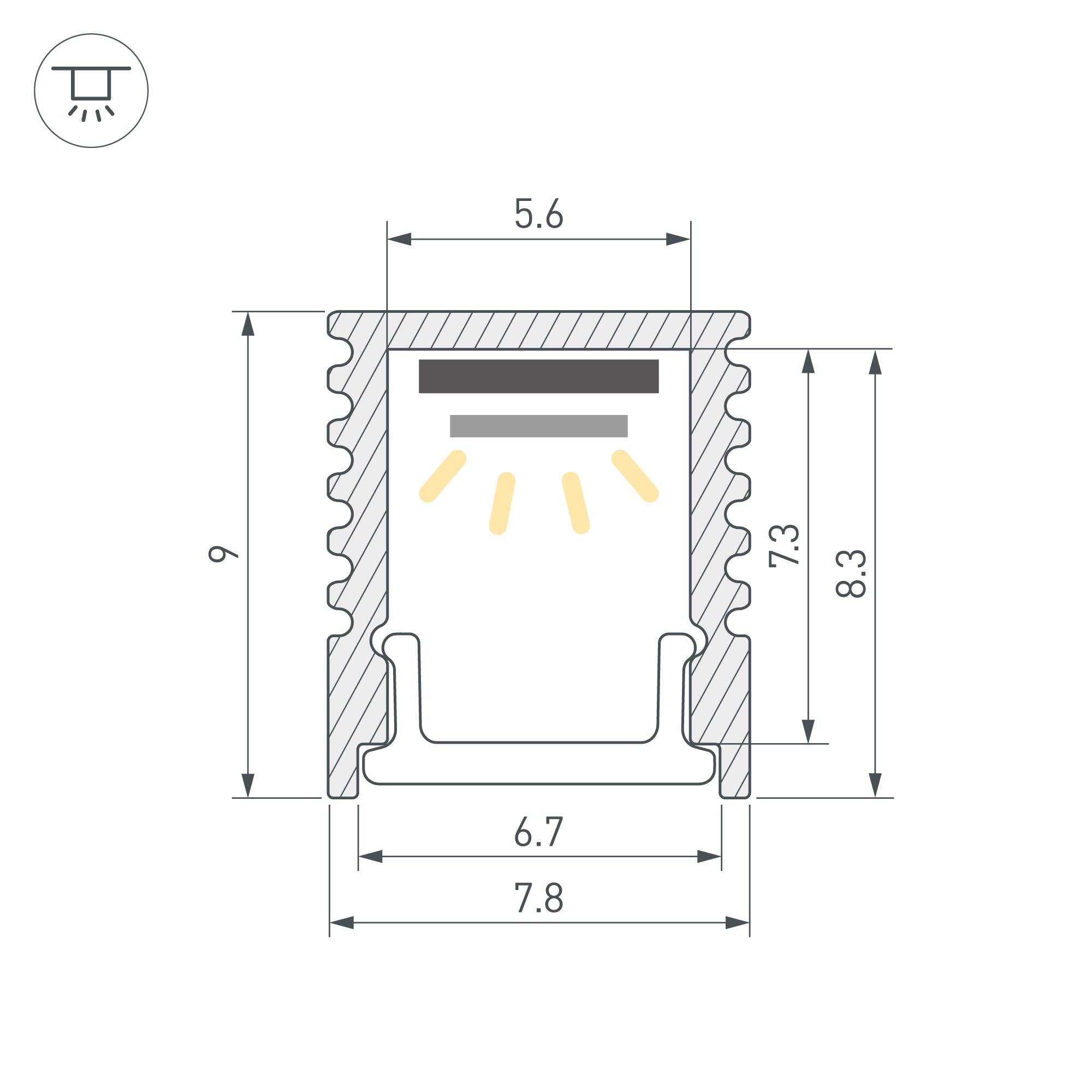 Алюминиевый анодированный микропрофиль для светодиодных лент и линеек. Цвет - чёрный. Габаритные размеры (L×W×H): 2000x7,8x9 мм. Ширина площадки для ленты 5,6 мм. Экраны, заглушки и другие аксессуары приобретаются отдельно. Цена за 1 метр.