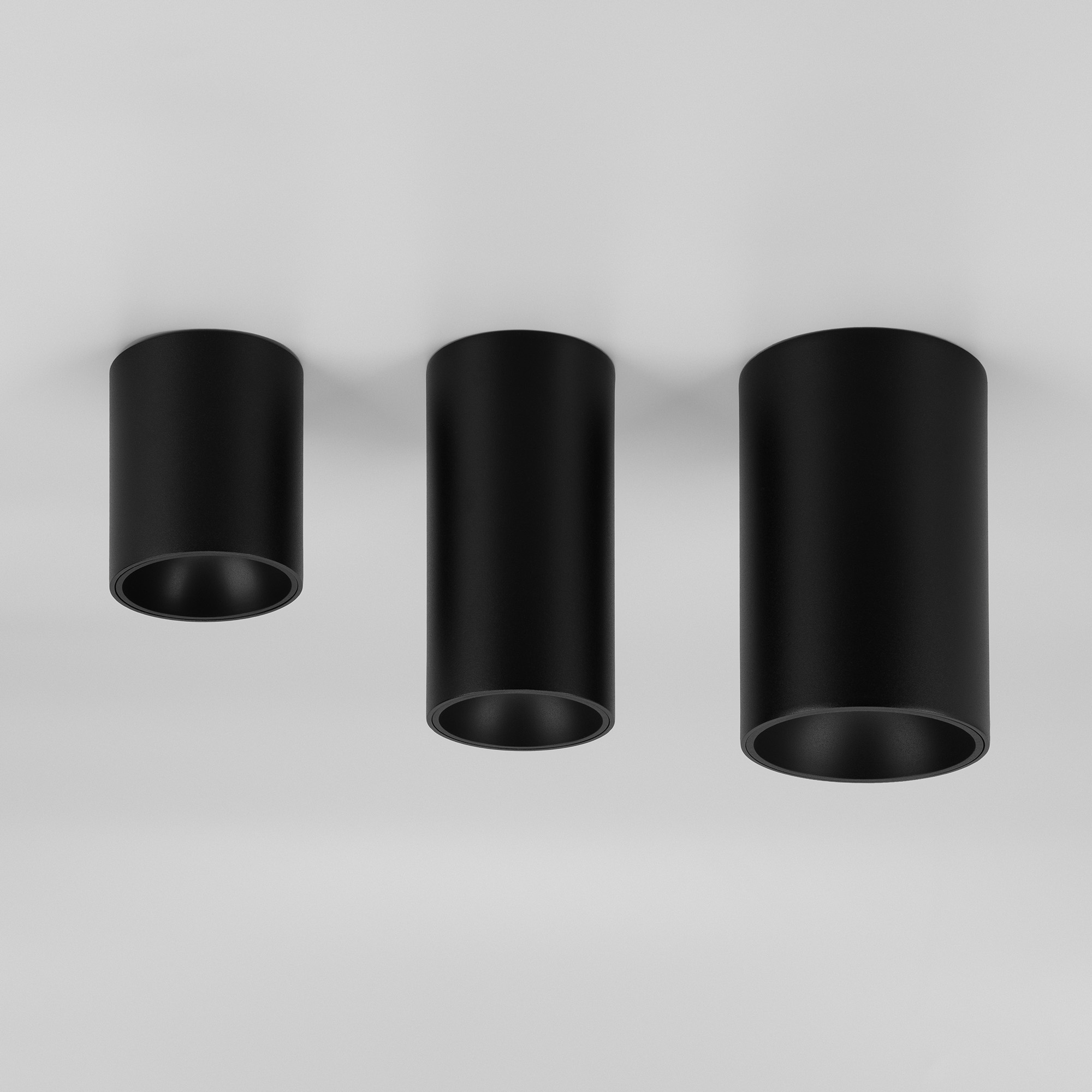 Накладной интерьерный светильник. Мощность 8 Вт, св. поток 580 лм, 73 лм/Вт, дневной 4000 K, CRI>90, угол 40°, напряжение питания 230 В. Черный круглый корпус с черной вставкой из алюминия, степень защиты IP44. Размер: диаметр 75 мм, высота 90 мм. Монтаж накладной. Драйвер 24-42 В, 200 мА, пульсация <1%.