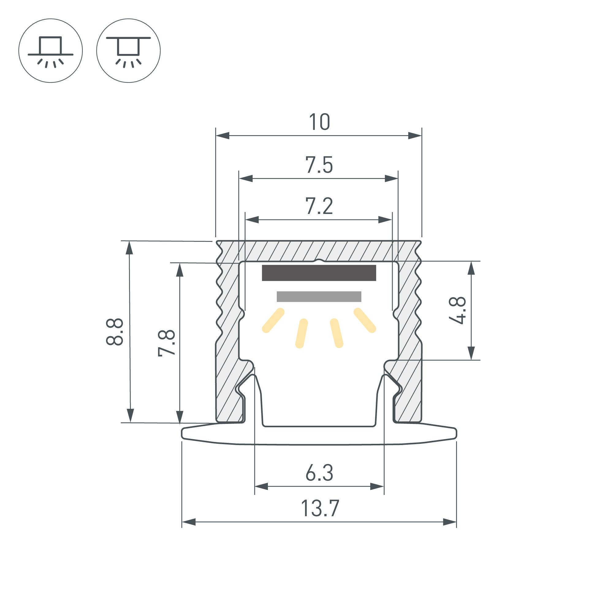 Накладной микро-профиль из анодированного алюминия для подсветки мебели, пазов, ниш и других элементов интерьера. Габаритные размеры профиля составляют 2000 мм в длину, 10 мм в ширину и 8,8 мм в высоту. Площадка для установки светодиодных лент позволяет использовать ленту шириной до 7,5 мм и мощностью до 10 Вт/м. Это обеспечивает гибкость в выборе светодиодных лент и создает потрясающие световые решения. Экран, заглушки и другие аксессуары не включены в комплект и приобретаются отдельно. Цена указана за 1 метр профиля. Отличное решение для создания современных световых проектов.