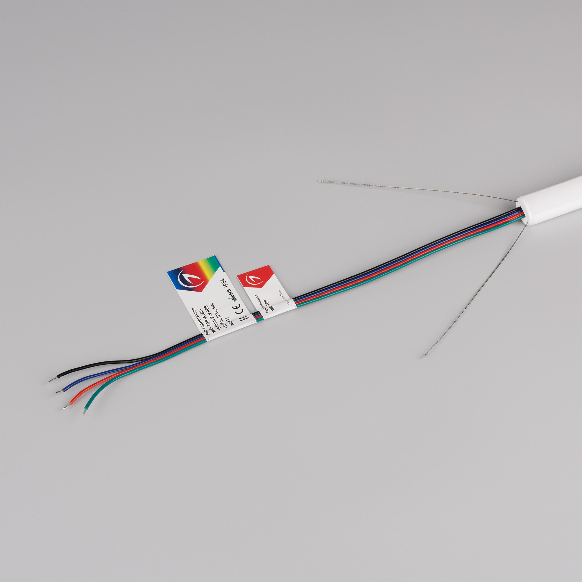 Гибкая герметичная лента (неон серии WAVE), сечение 18×15 мм с тросом-натяжителем. Светодиоды SMD2835 240 шт/м. Цвет свечения RGB, угол излучения 360°. Мощность 10 Вт/м, питание 24 В. Класс пылевлагозащиты IP54. Размеры 5000×18×15 мм. Мин. отрезок 50 мм. Изгиб согласно метки на корпусе, минимальный радиус изгиба 150 мм. Кабель питания длиной 500 мм, вывод с одной стороны вдоль линии сечения неона. Катушка 5 м. Цена за 1 м. Гарантия 3 года.