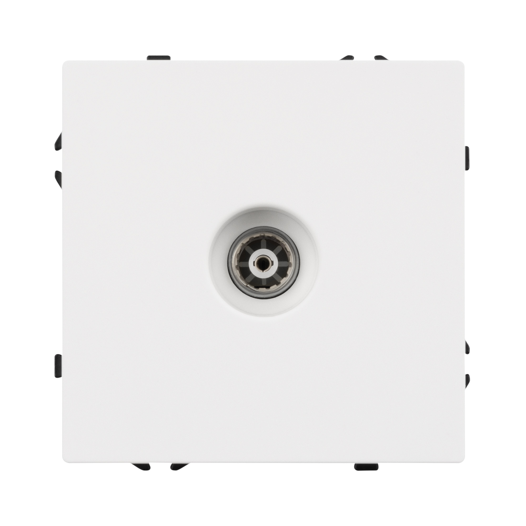 Строгие геометрические линии гармонично сочетаются с функциональностью продуманных механизмов, создавая идеальное решение для дизайн-проектов, где важны как эстетика, так и практичность. Механизм ТВ-розетки совместим с рамками серии NOBE, создает утонченный минималистичный вид. Скрытый тип монтажа позволяет гармонично встроить в интерьер любого современного дизайн-проекта. Видимая часть выполнена из высококачественного пластика цвета белый кварц и имеет Soft-Touch покрытие, что придает изделию приятные тактильные ощущения и стильный внешний вид. Механизм ТВ-розетки предназначена для подключения кабельного телевидения, путем подсоединения коаксиального кабеля к винтовому зажиму. Усиленные распорные лапки двойного захвата надежно фиксируют устройство в установочном подрозетнике круглого сечения диаметром 60мм. Суппорт окрашен в черный матовый цвет и выполнен из металла толщиной 1,5мм, что обеспечивает безопасность и уверенность в установке. На каждой стороне суппорта размещены фиксирующие элементы, позволяющие комбинировать механизмы в системы до 5шт как горизонтально, так и вертикально.
