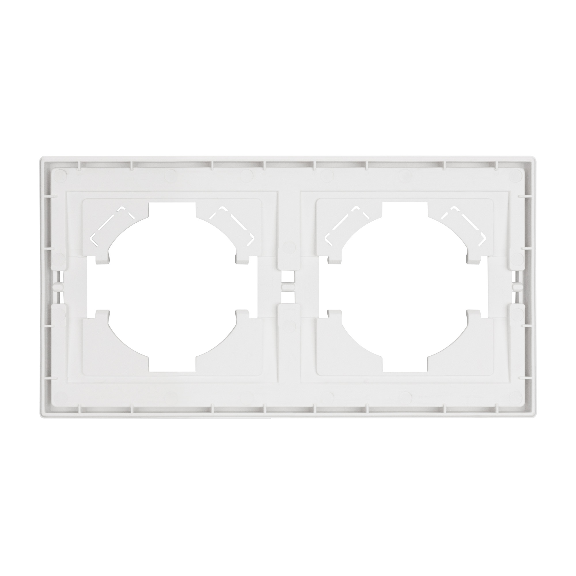 Рамка пластиковая на 2 поста, под встраиваемый механизм. Цвет - белый, с Soft-Touch покрытием. Среднего уровня герметичности IP20. Ориентация монтажа горизонтальная. Габаритные размеры: длина 150 мм, ширина 80 мм, высота 9 мм. Гарантийный срок 12 мес.