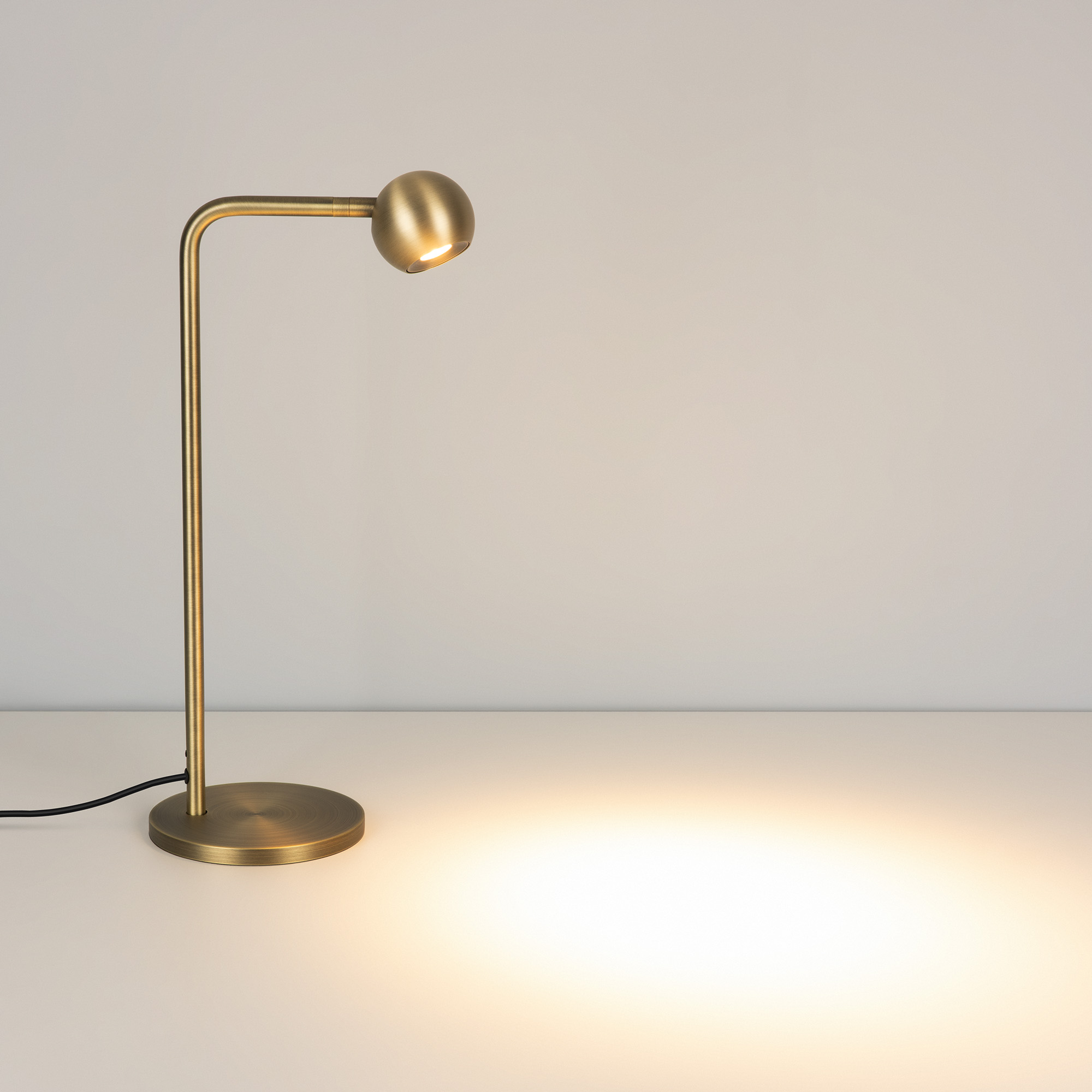 Декоративный настольный светильник. Мощность 6 Вт, св. поток 540 лм, 90 лм/Вт, теплый 3000К, CRI>90, угол 30°, напряжение питания 230 В.Бронзовый корпус из алюминия (основание, ножка, светоизлучаль в форме шара), степень защиты IP20. Размер основания Ø140×11 мм, размер ножки Ø12,5×430х120 мм, размер светоизлучателя Ø65×55,5 мм. Длина провода 1580 мм, питание от сети 220-240V., пульсация <1%