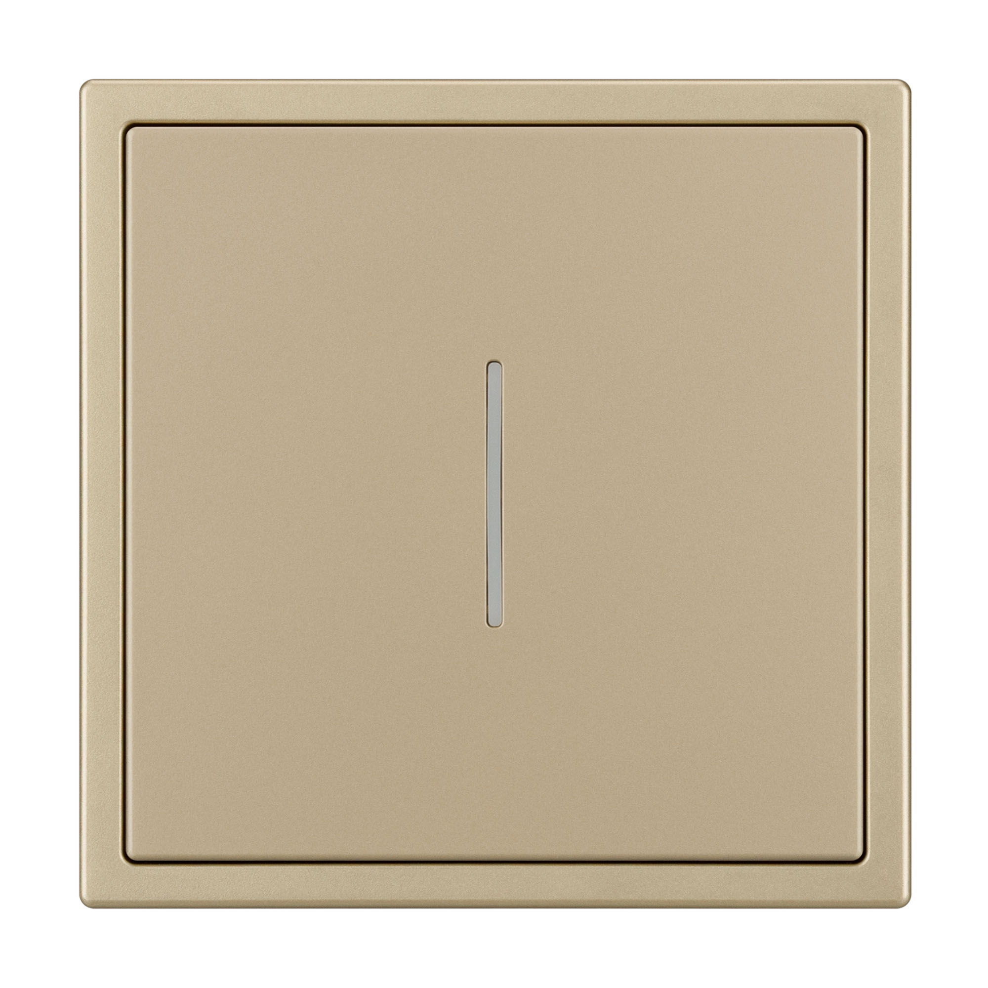 Механизм звонкового выключателя на 1 пост 1 самовозвратная клавиша. Цвет - золотой песок, с Soft-Touch покрытием. Клавиша имеют LED подсветку - cинего свечения. Без фронтальной рамки. Уровень пылевлагозащиты IP20. Выключатель устанавливается в стандартный подрозетник круглого сечения диаметром 60мм. Габаритные размеры: длина 71 мм, ширина 71 мм, высота 52 мм. Гарантийный срок 10 лет.
