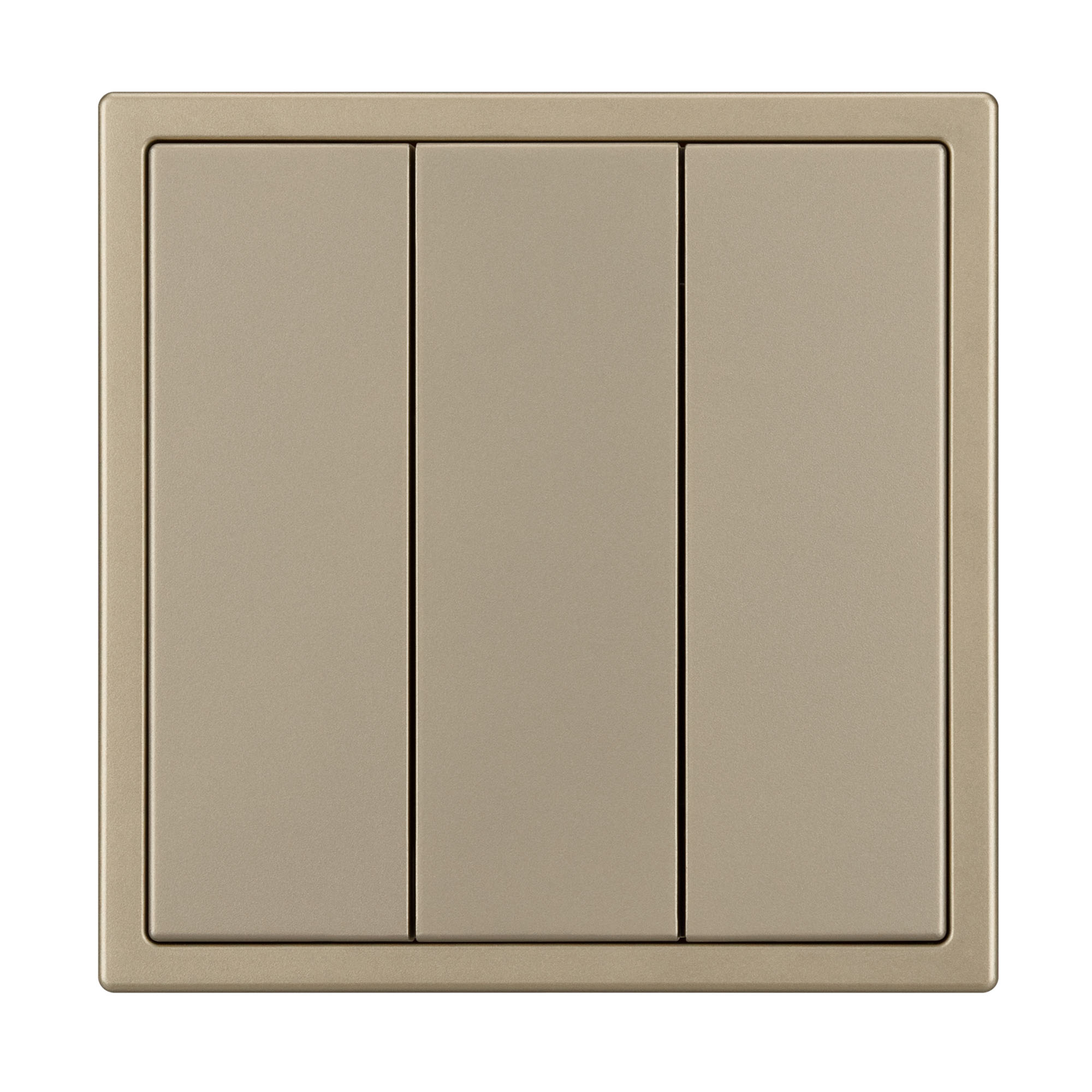 Механизм выключателя света клавишный на 1 пост 3 клавиши (непроходной). Цвет - золотой песок, с Soft-Touch покрытием. Без фронтальной рамки. Уровень пылевлагозащиты IP20. Выключатель устанавливается в стандартный круглый подрозетник круглого сечения диаметром 60мм. Габаритные размеры: длина 71 мм, ширина 71 мм, высота 52 мм. Гарантийный срок 10 лет.
