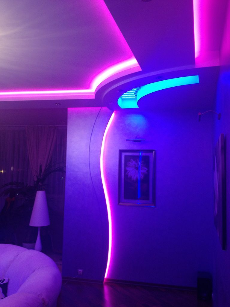 Она была установлена во все ниши: объемные формы у стен и, конечно же, многоуровневые потолки.