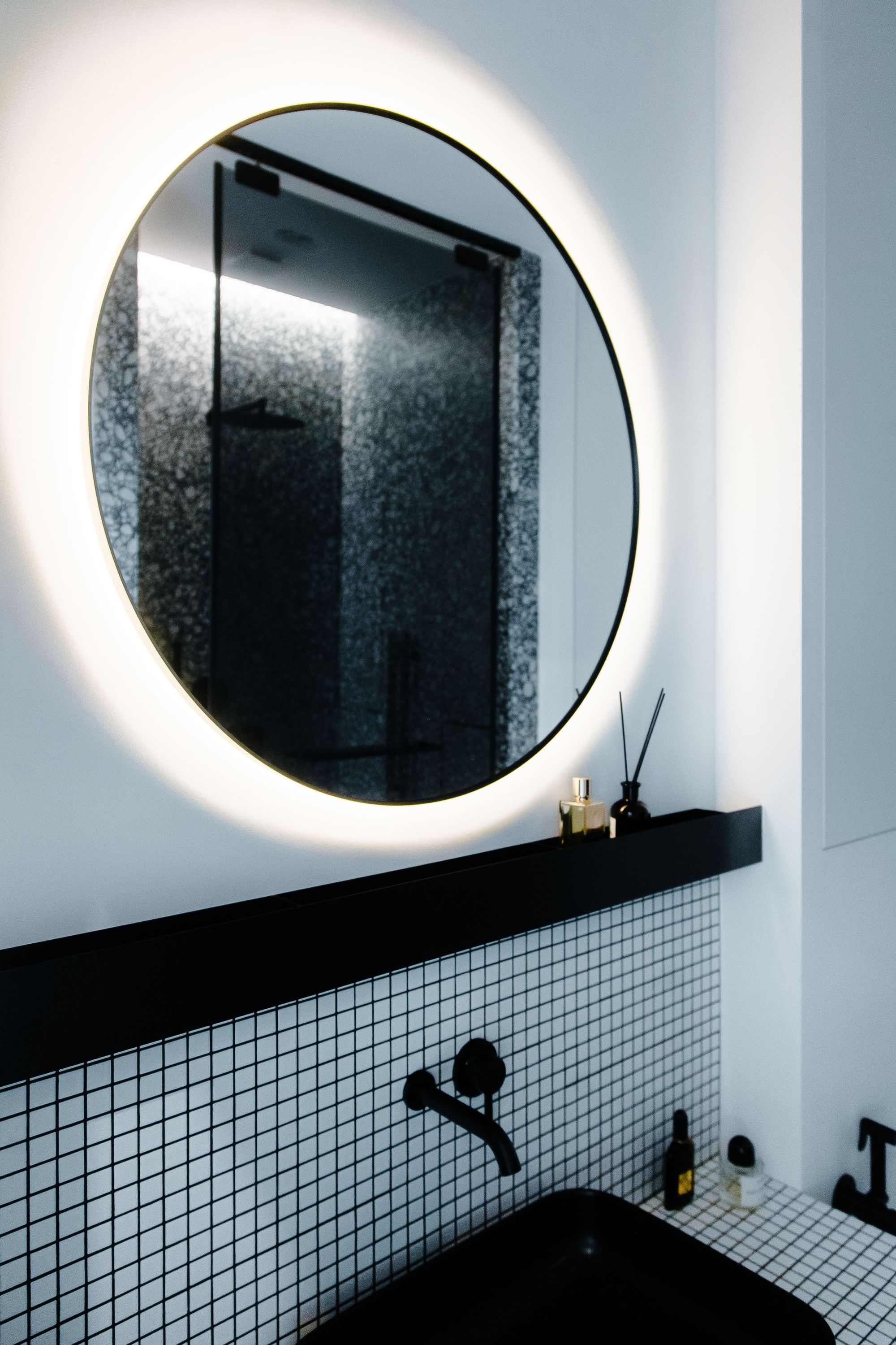 Основу интерьера частной квартиры составляет насыщенная серая цветовая гамма — от глубокого графитового оттенка до «лофтового» металлика. Пол теплого древесного цвета вносит в холодную монохромность ощущение уюта, а яркие цветные детали оживляют пространство. Картина с мультяшным героем, оригинальные текстуры и цветная подсветка создают в пространстве жизнерадостную и неформальную атмосферу.