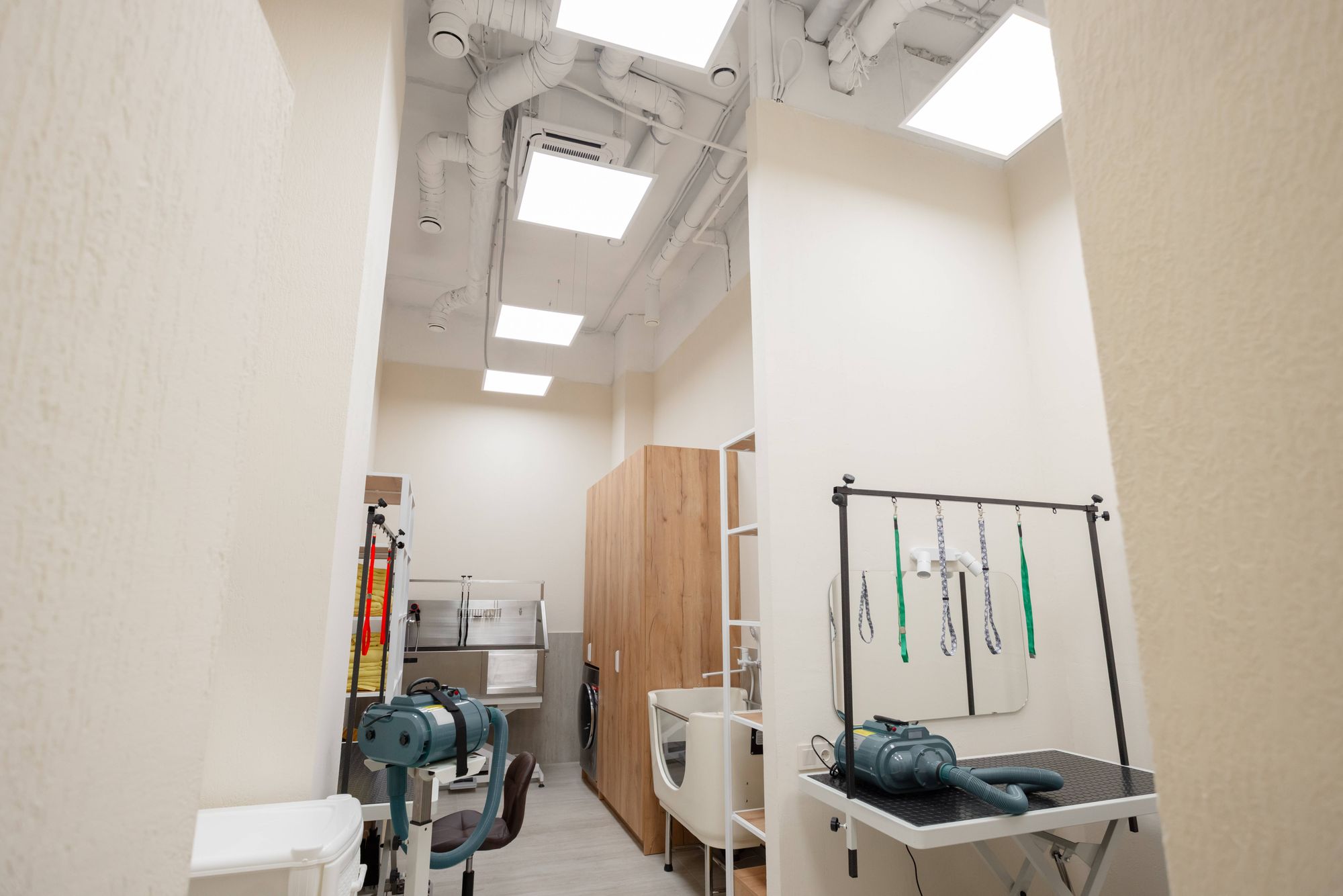 В санузле установили светильники GRIGLIATO и подсветку зеркала, тумбы и ниши в стене. А создать отличную видимость и комфортные условия мастерам, которые проводят груминг-процедуры в рабочем зале, помогли панели INTENSO. «У них торцевая засветка, отличные световые характеристики и равномерное распределение света», — подчеркнула Дина.