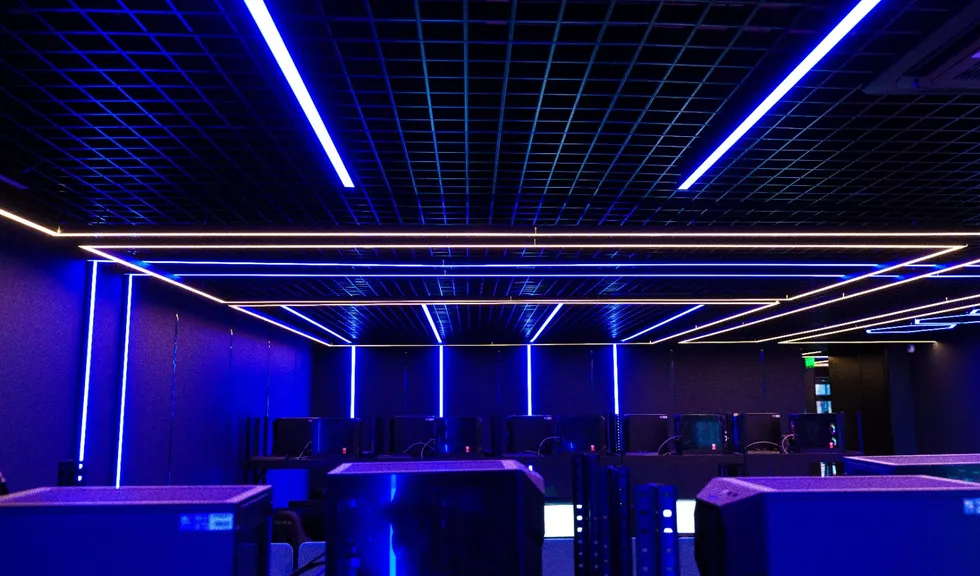 Геометрические фигуры из линейных профильных светильников со светодиодной лентой серий RTW и MOONLIGHT отлично вписываются в пространство центра. Минималистичные во внешнем исполнении, они создают основное освещение.