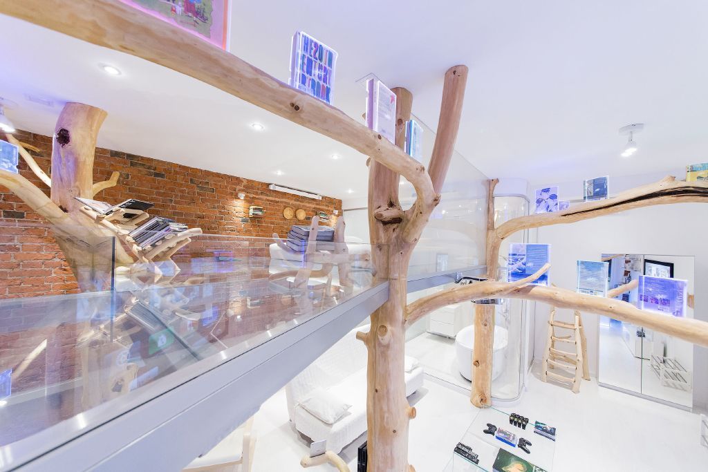 В данном проекте было широко использовано светодиодное освещение и подсветка на основе оборудования arlight®. На ветвях деревьев расположились плексигласовые ниши для книг, подсвеченные светодиодной лентой arlight® разных цветов.
