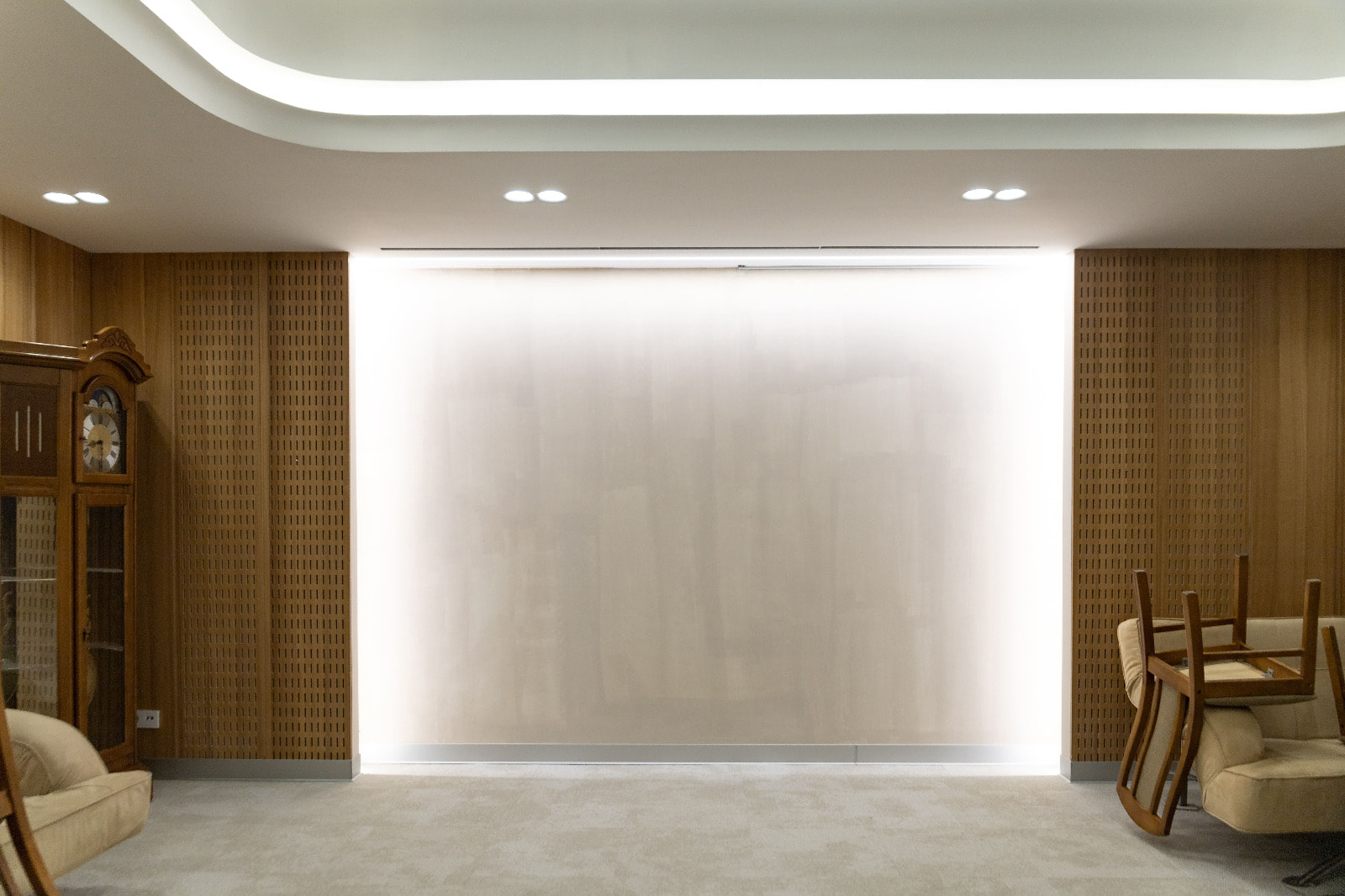 После капитального ремонта интерьер здания представительства ЯНАО стал более стильным, современным и в то же время — респектабельным. Разнообразные линии света — один из основных источников освещения в интерьере. Они не только создают освещение разных типов — от основного до декоративного, — но и повторяют геометрию отделки, тем самым гармонично вписываясь в пространство.